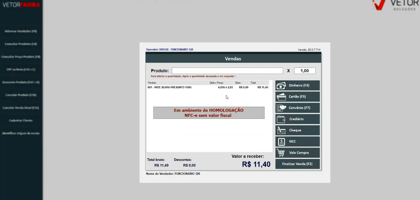 No módulo PDV, é necessário identificar a venda, informando primeiramente o vendedor e, se desejar, o cliente. Em seguida, registre os produtos que irão compor o orçamento.