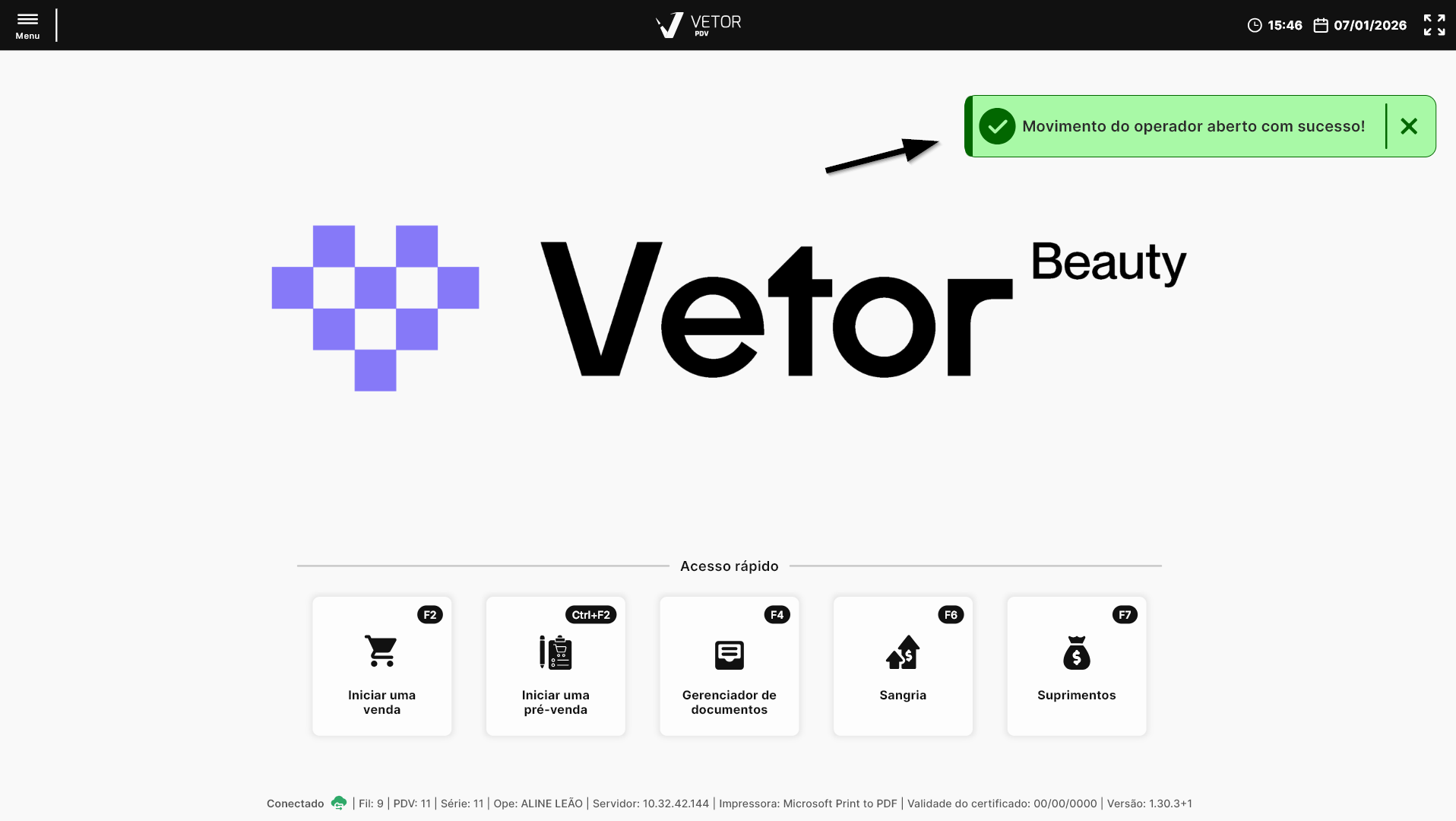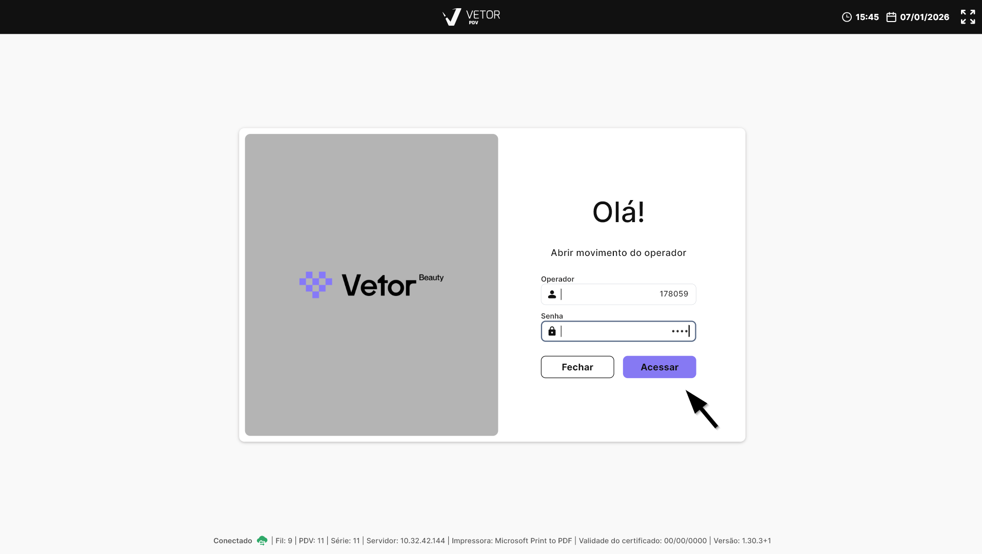 PDV Beauty - Abrir Movimento do Operador