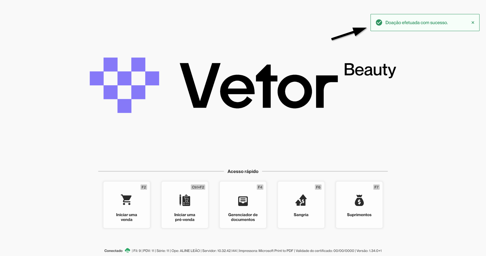 O PDV permite que a loja realize doações diretamente para entidades beneficentes. Essas doações podem ser efetuadas com recursos próprios da empresa ou utilizando valores provenientes de doações realizadas anteriormente por clientes durante as vendas. Trata-se de uma iniciativa socialmente responsável, que contribui para o fortalecimento da imagem da empresa e possibilita o apoio a instituições e causas sociais que dependem de doações para a realização de suas atividades. A seguir, confira como utilizar esse recurso no módulo PDV.