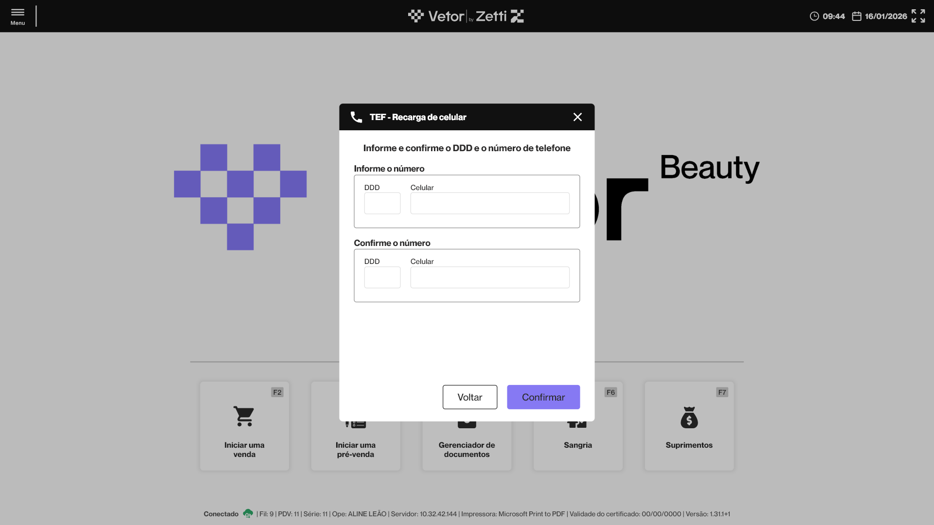- Realize o login no PDV Beauty.