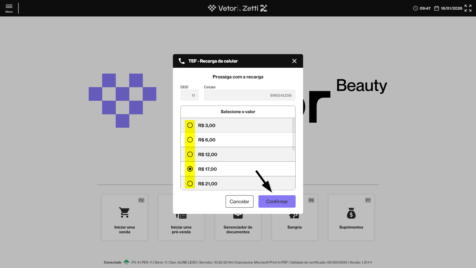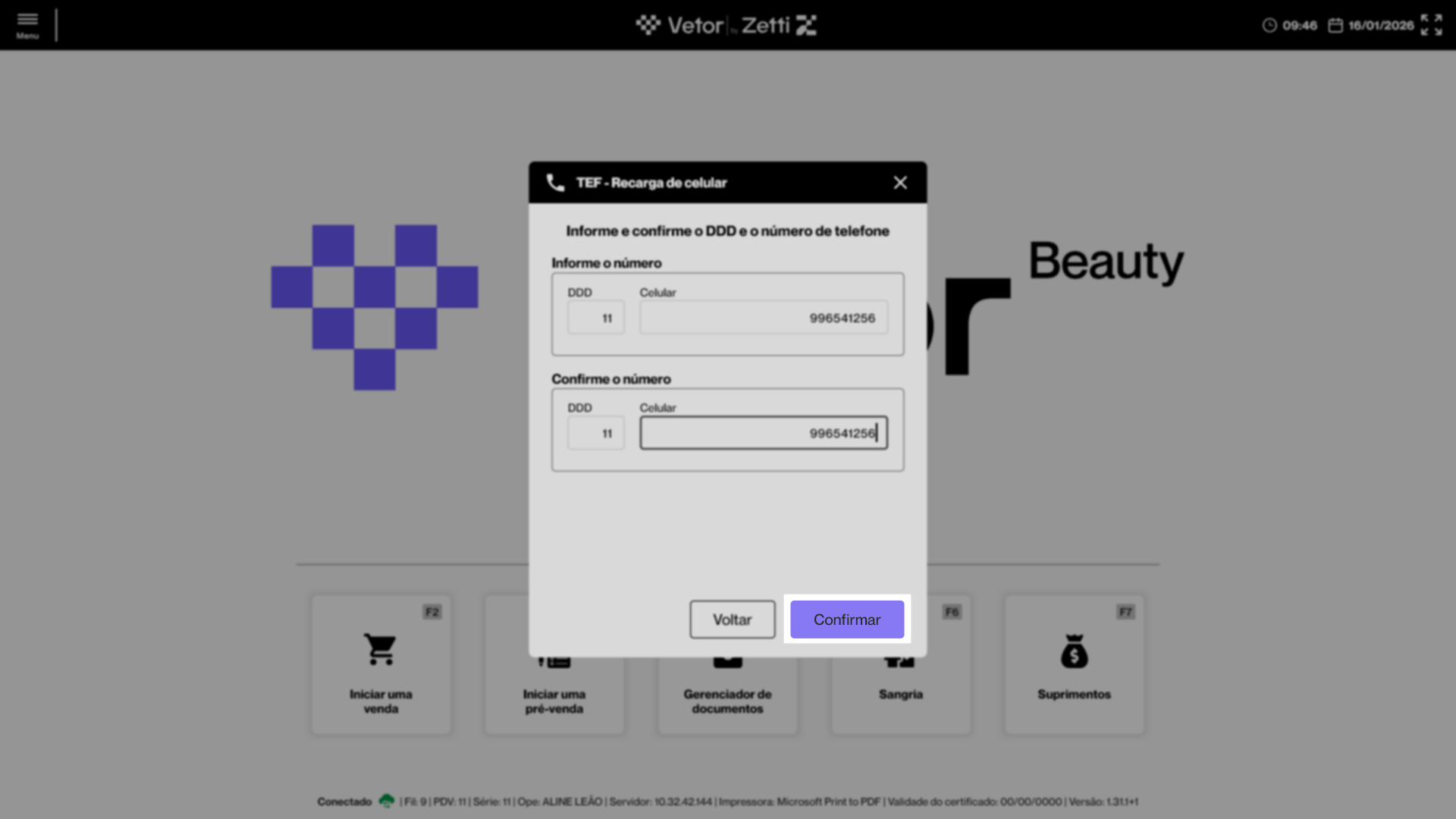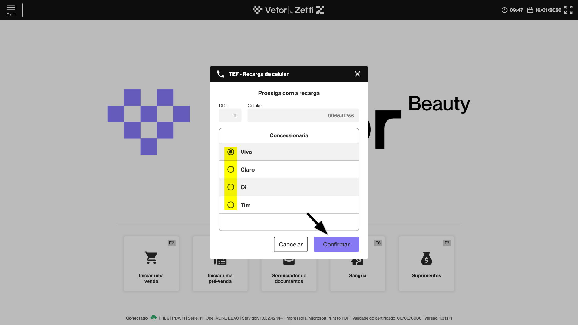 O PDV Beauty disponibiliza a funcionalidade de recarga de celular, permitindo que o operador realize a venda de créditos para linhas móveis diretamente pelo sistema, de forma rápida e segura. O processo contempla validação do número informado, seleção de operadora e valor da recarga, além de integração com o checkout do PDV, possibilitando o pagamento por dinheiro, Pix, cartão de débito, cartão de crédito, TEF ou POS. Após a conclusão da operação, o sistema realiza o registro automático da operação e emissão de comprovante não fiscal. Confira a seguir como realizar o passo a passo deste processo.