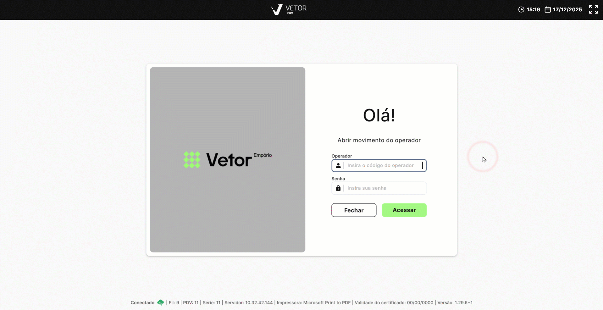 • Troca de Operadores: Permite substituir o operador responsável pelo caixa durante o expediente, sem interromper o fluxo de vendas.