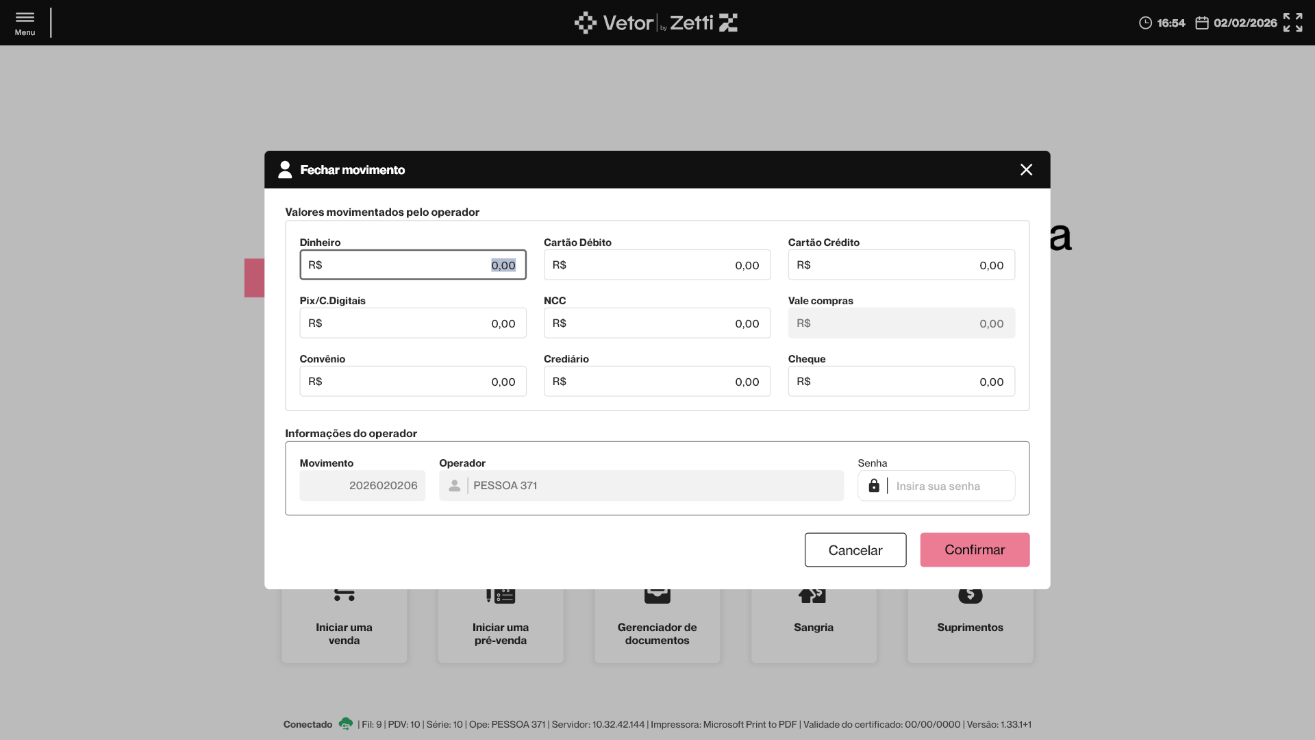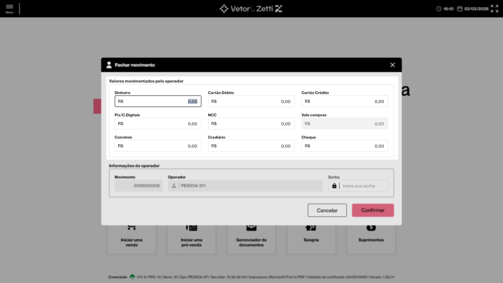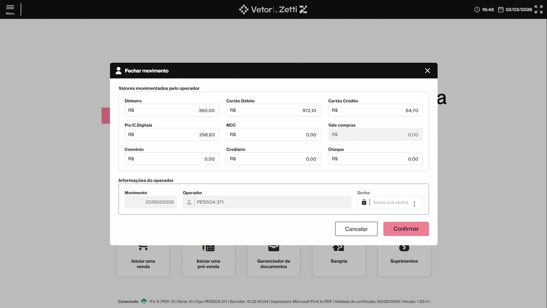 PDV Farma - Fechar Movimento do Operador (Ctrl+O)
