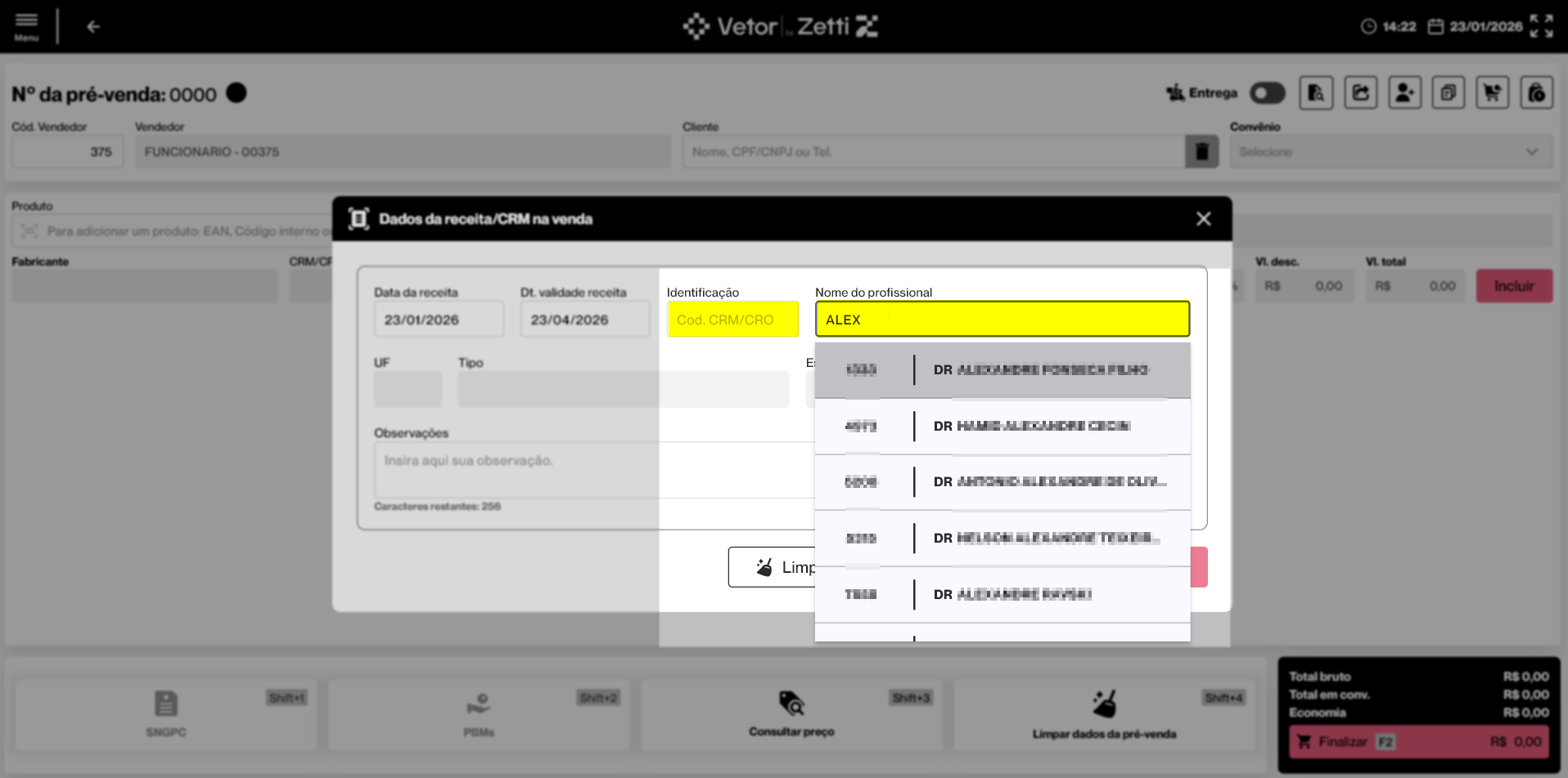 PDV Farma - Pré-venda: Dados da Receita/CRM na Receita