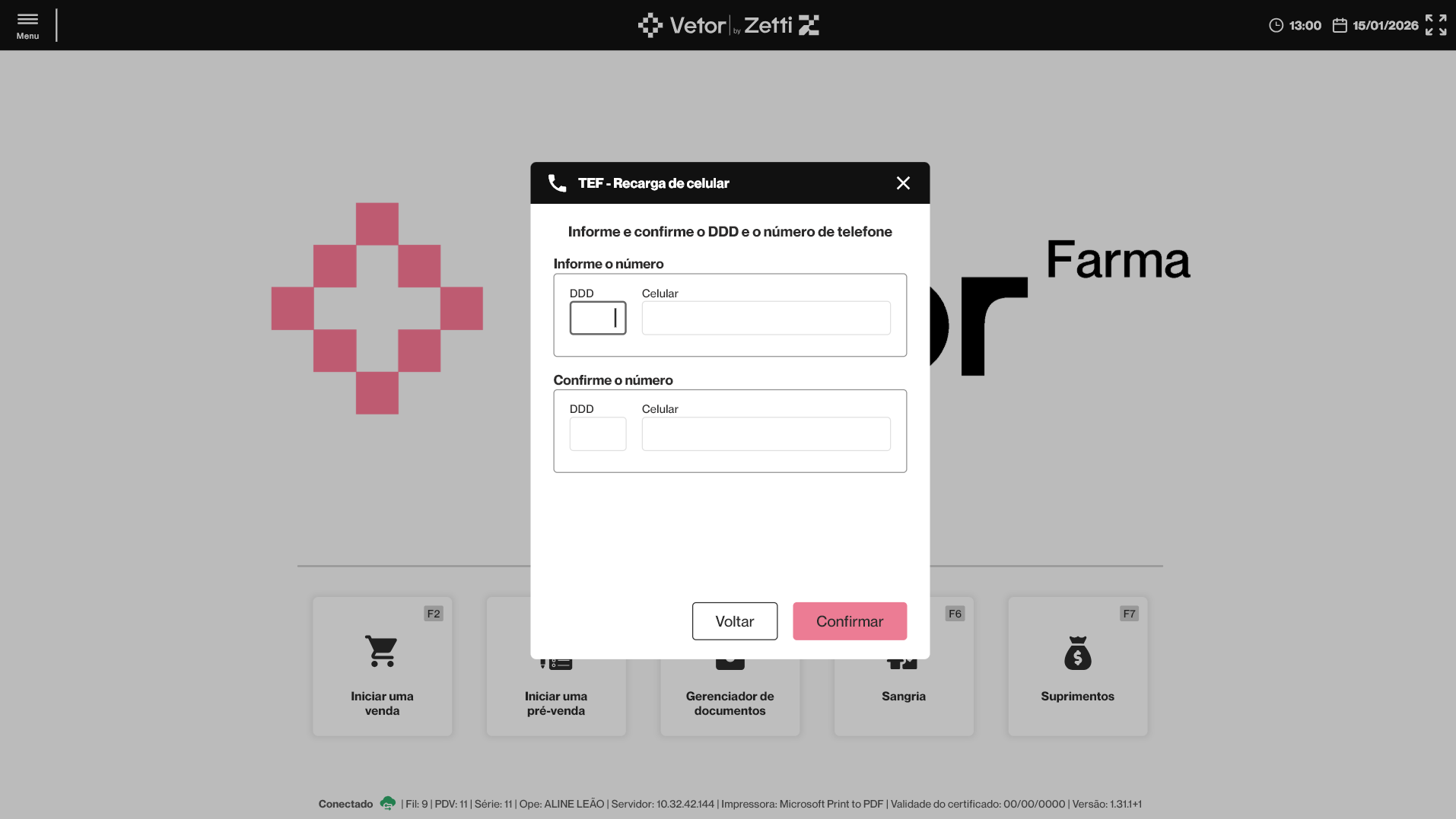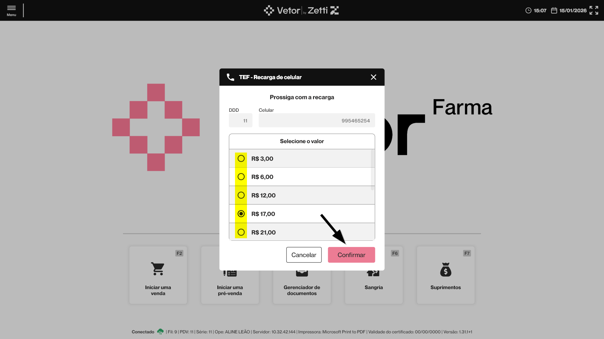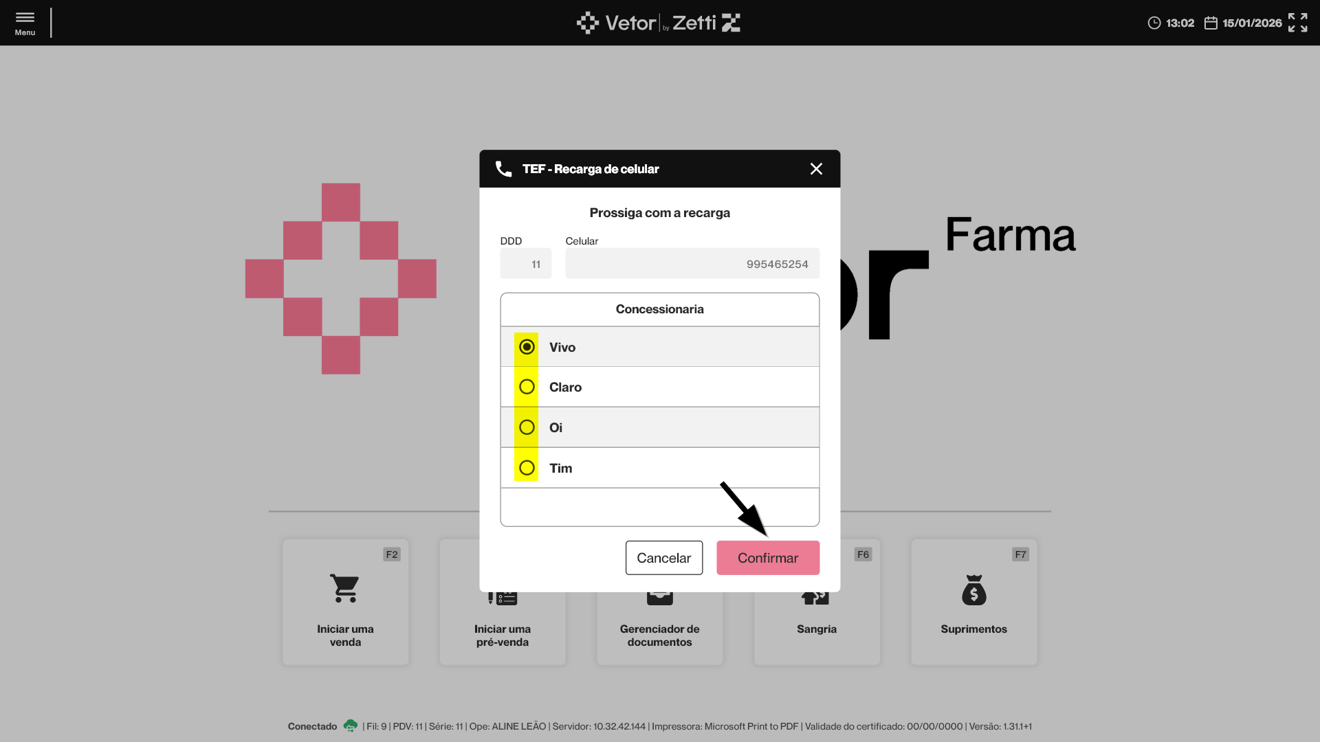 O PDV Farma disponibiliza a funcionalidade de recarga de celular, permitindo que o operador realize a venda de créditos para linhas móveis diretamente pelo sistema, de forma rápida e segura. O processo contempla validação do número informado, seleção de operadora e valor da recarga, além de integração com o checkout do PDV, possibilitando o pagamento por dinheiro, Pix, cartão de débito, cartão de crédito, TEF ou POS. Após a conclusão da operação, o sistema realiza o registro automático da operação e emissão de comprovante não fiscal. Confira a seguir como realizar o passo a passo deste processo.
