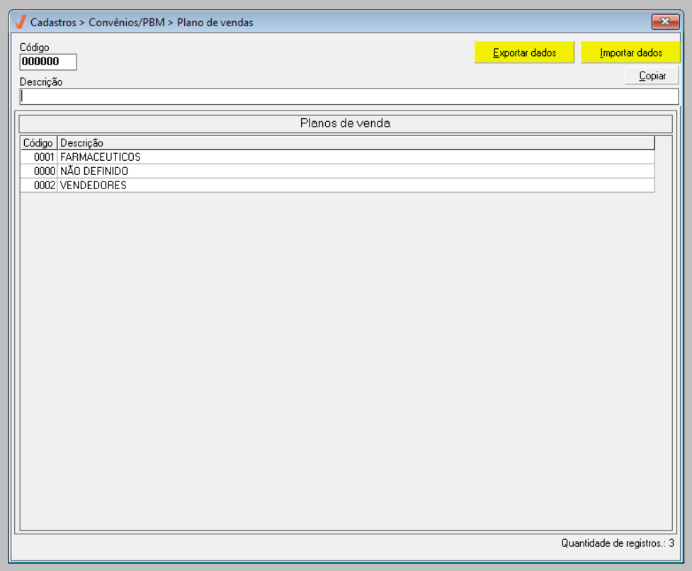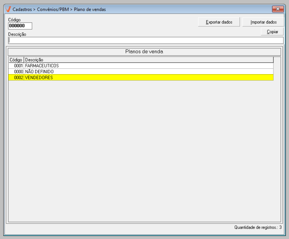 - Acesse o menu: Cadastros >> Convênios / PBM >> Planos de vendas.