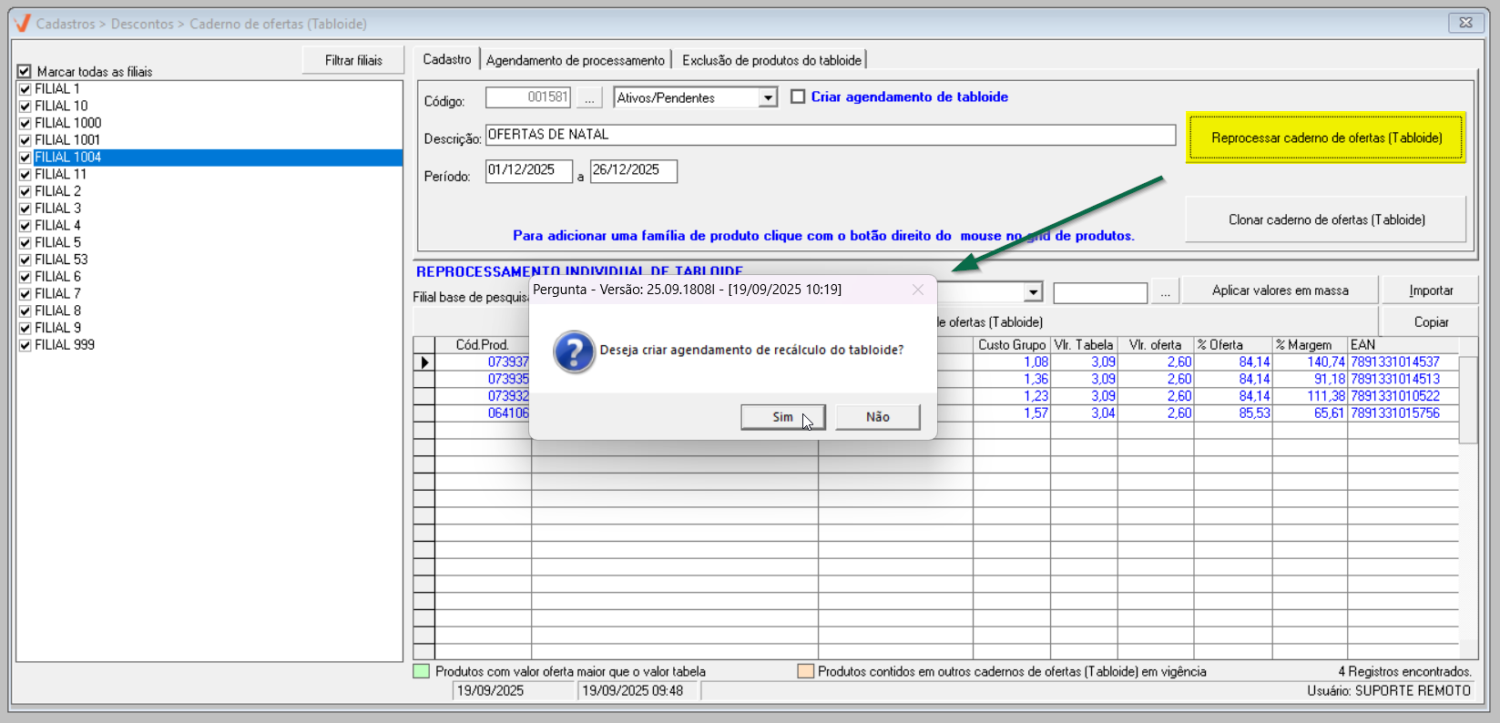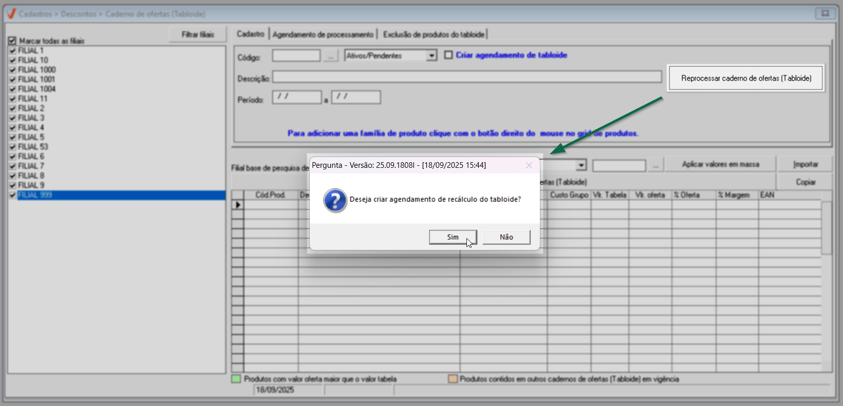 Mas, caso clique em >> Não e depois queira reprocessar as ofertas, será possível. Confira esse processo no 2º passo deste documento.