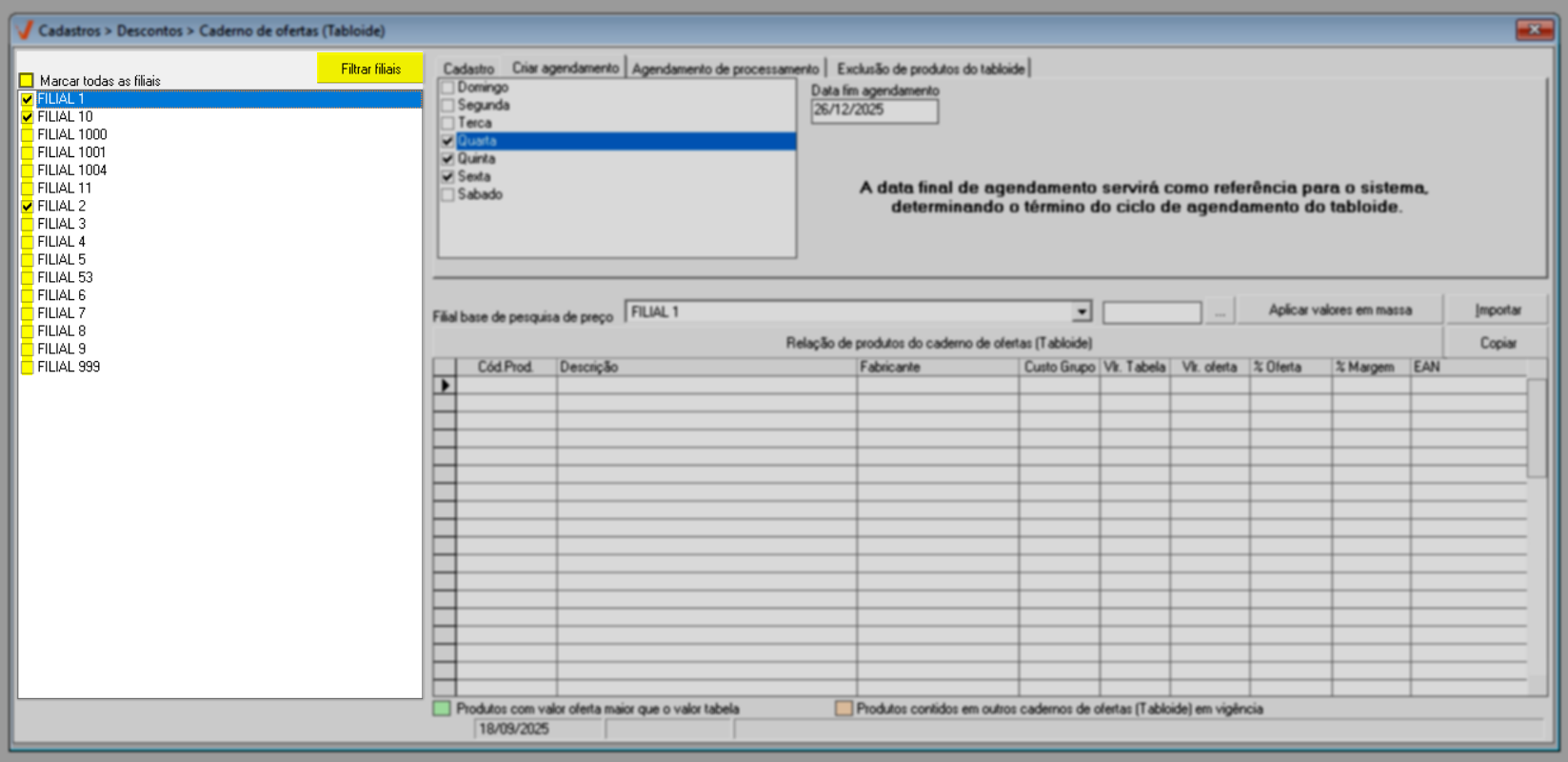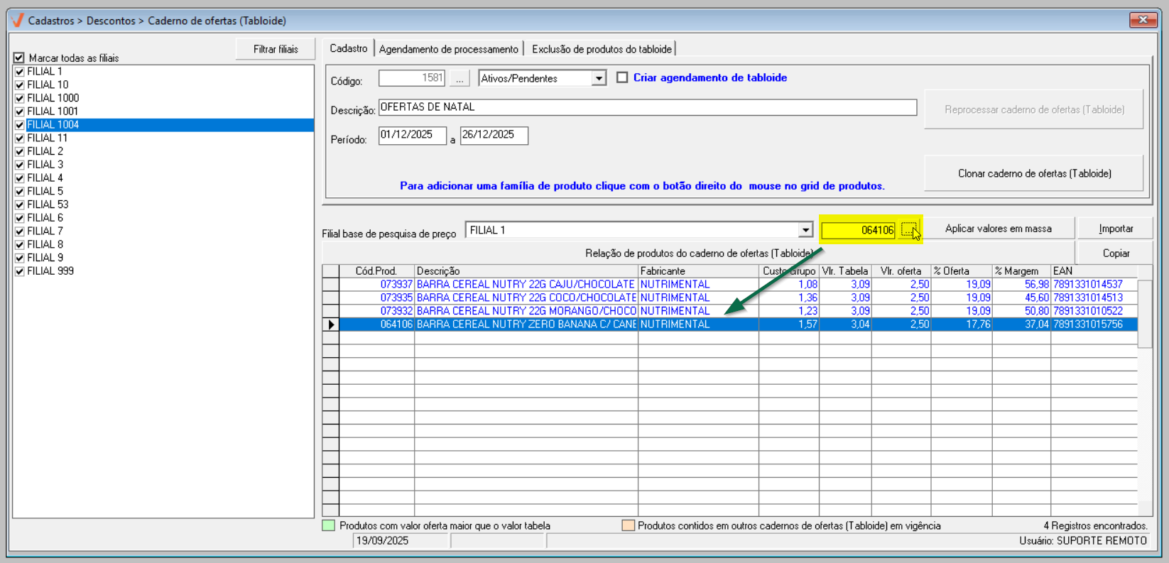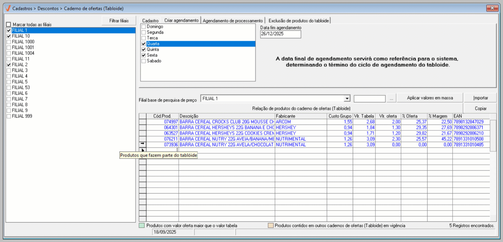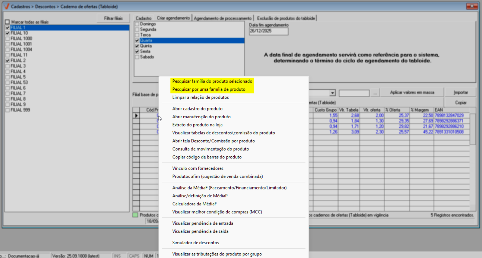- Acesse o menu: Cadastros >> Descontos >> Caderno de Ofertas (Tabloide).