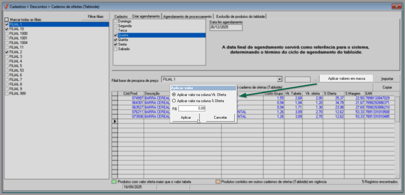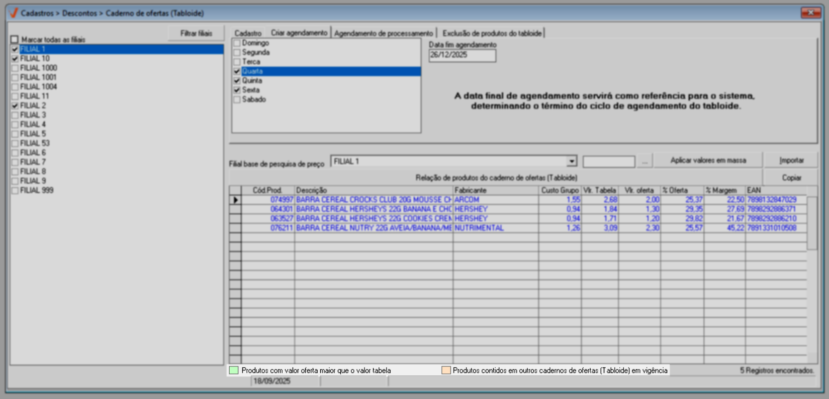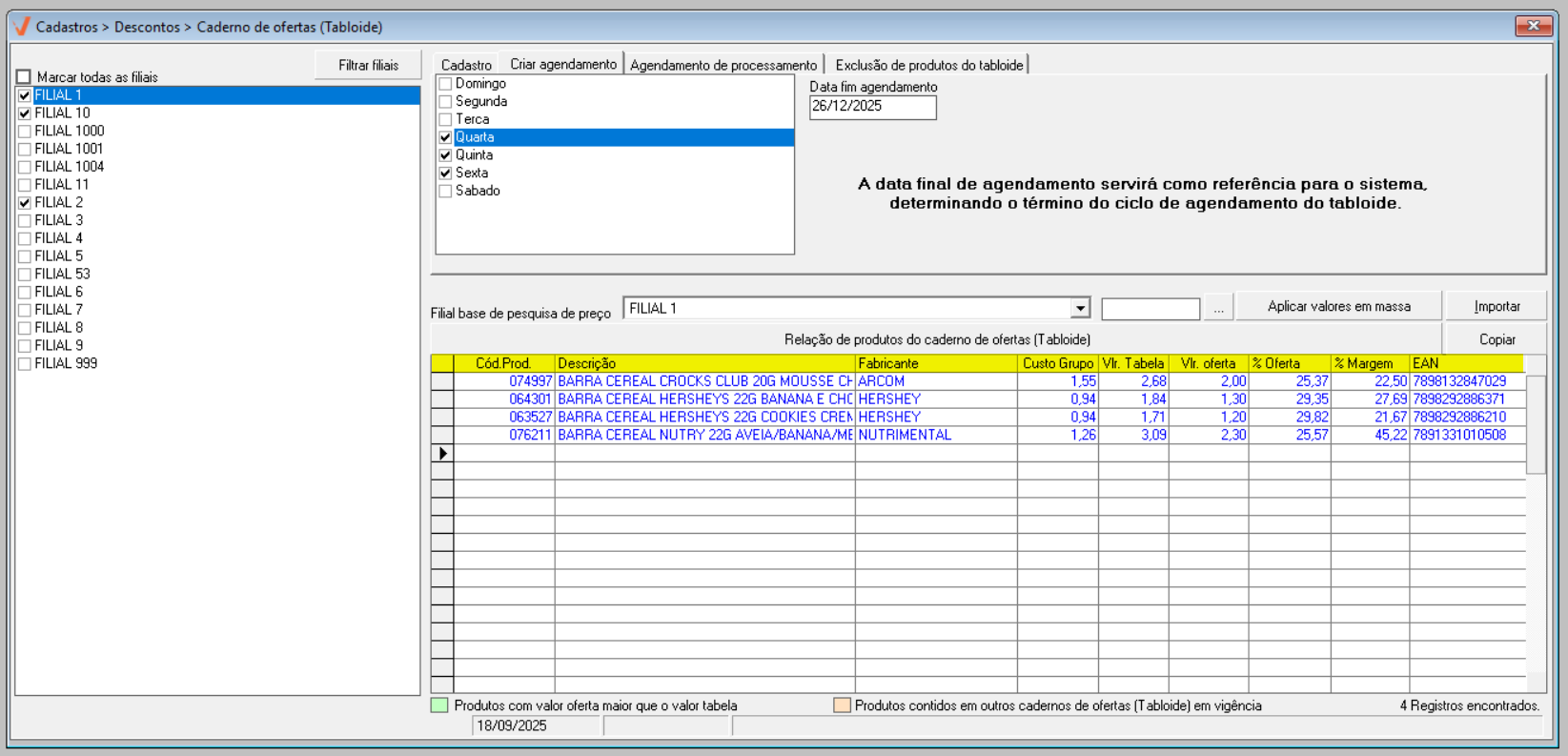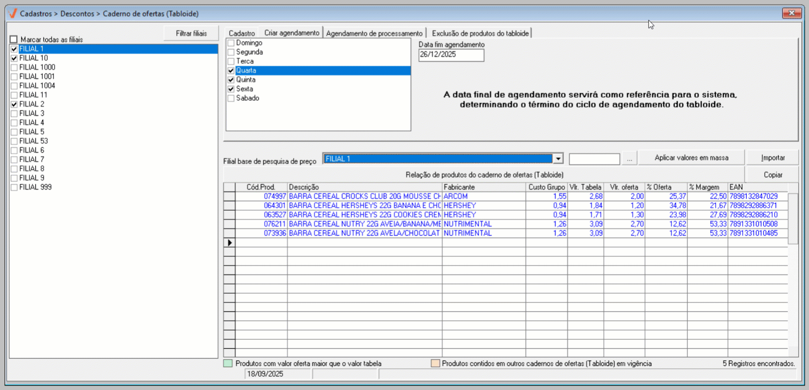 - Acesse o menu: Cadastros >> Descontos >> Caderno de Ofertas (Tabloide).