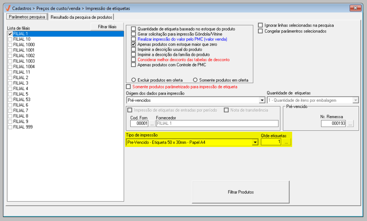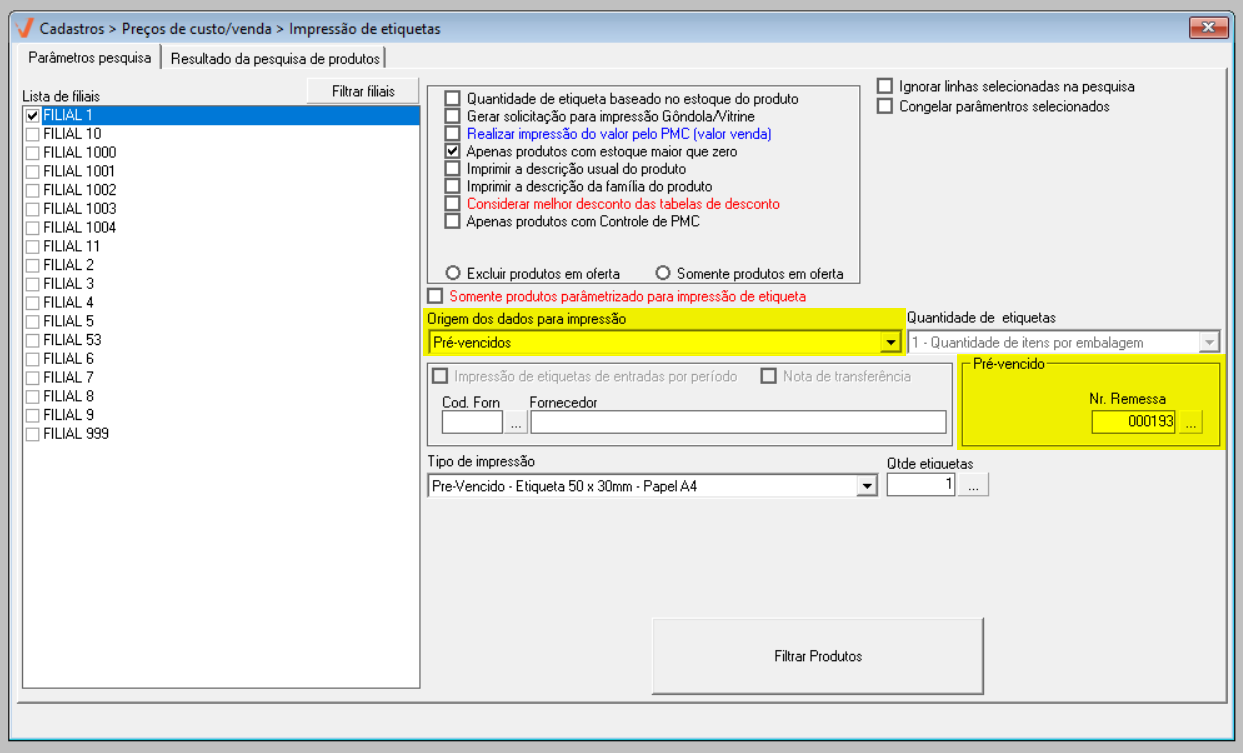 2° Passo – Etiquetas para remessa de Pré-vencidos