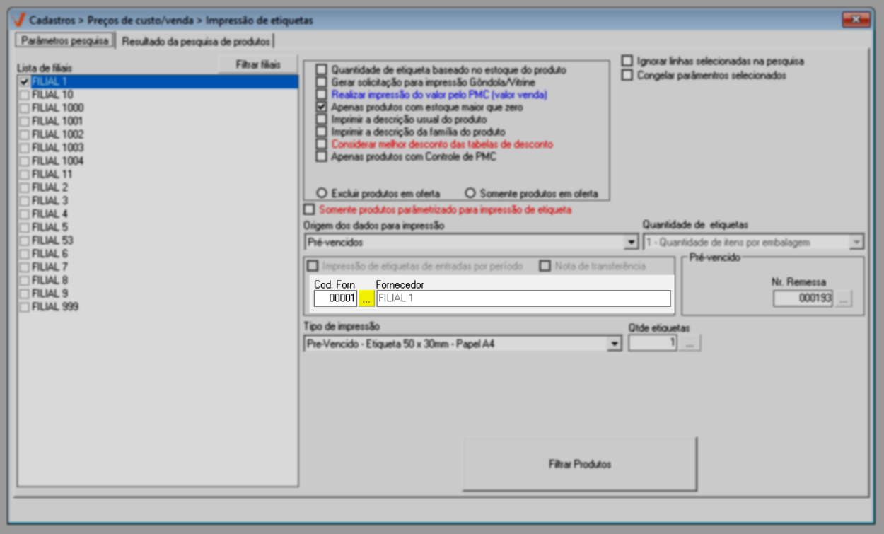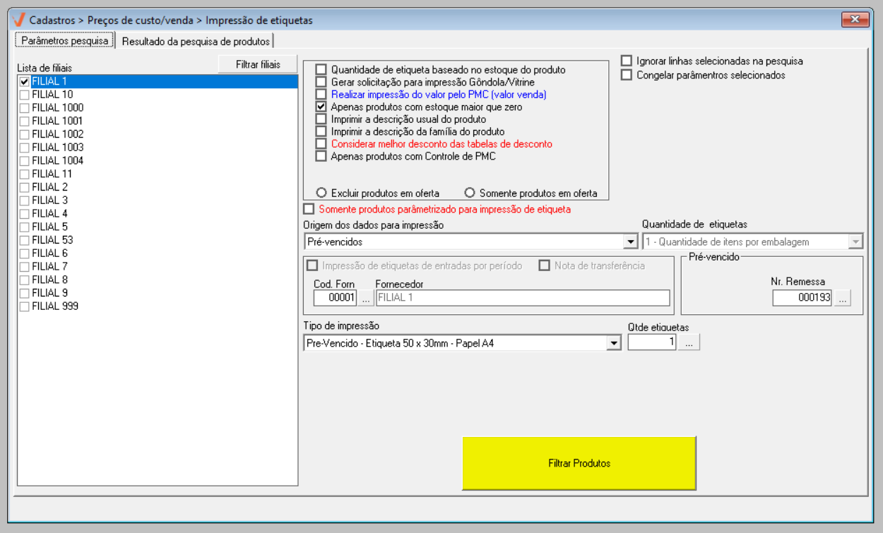 A finalidade das etiquetas é indicar o preço das mercadorias oferecidas ao cliente, neste sentido, por meio da tela que será apresentada é possível realizar a consulta de pré-vencidos, bem como a configuração e impressão das etiquetas de identificação.