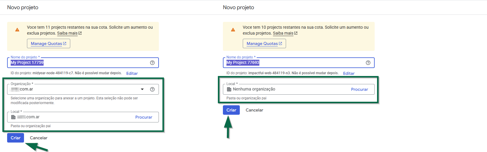 Quando o Google Cloud é acessado com um e-mail corporativo do Google Workspace, os projetos são criados dentro de uma Organização, que representa a empresa e permite governança centralizada, como controle de acesso, políticas de segurança, auditoria e faturamento. Já ao utilizar uma conta pessoal @gmail.com, não há uma organização associada; nesse caso, o projeto não fica vinculado a uma organização.
