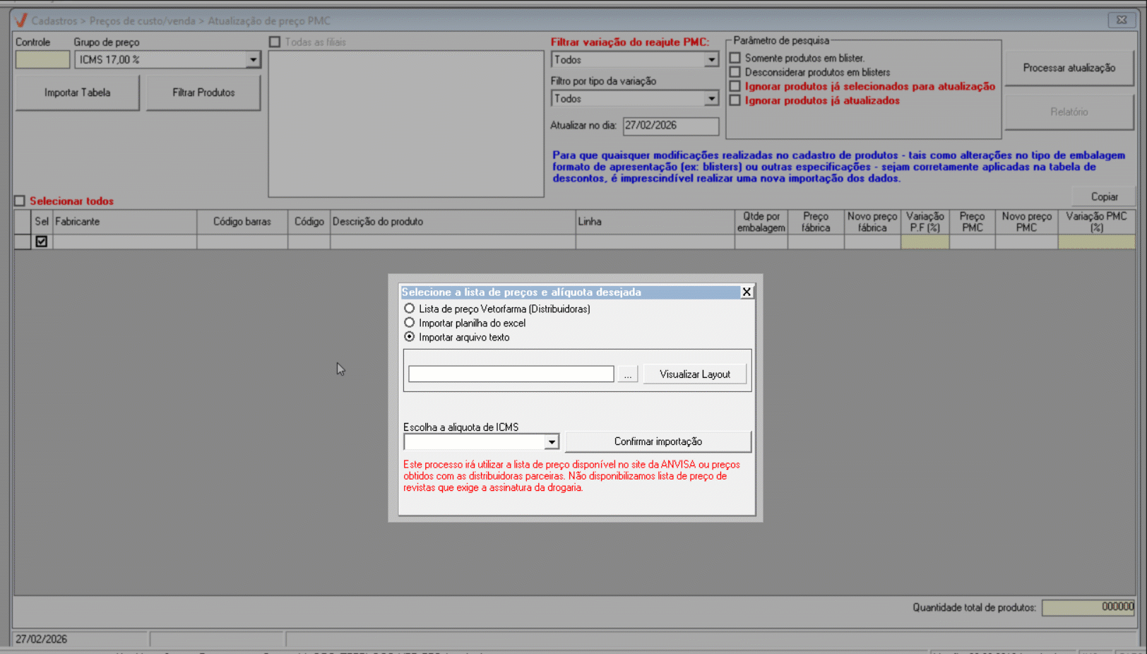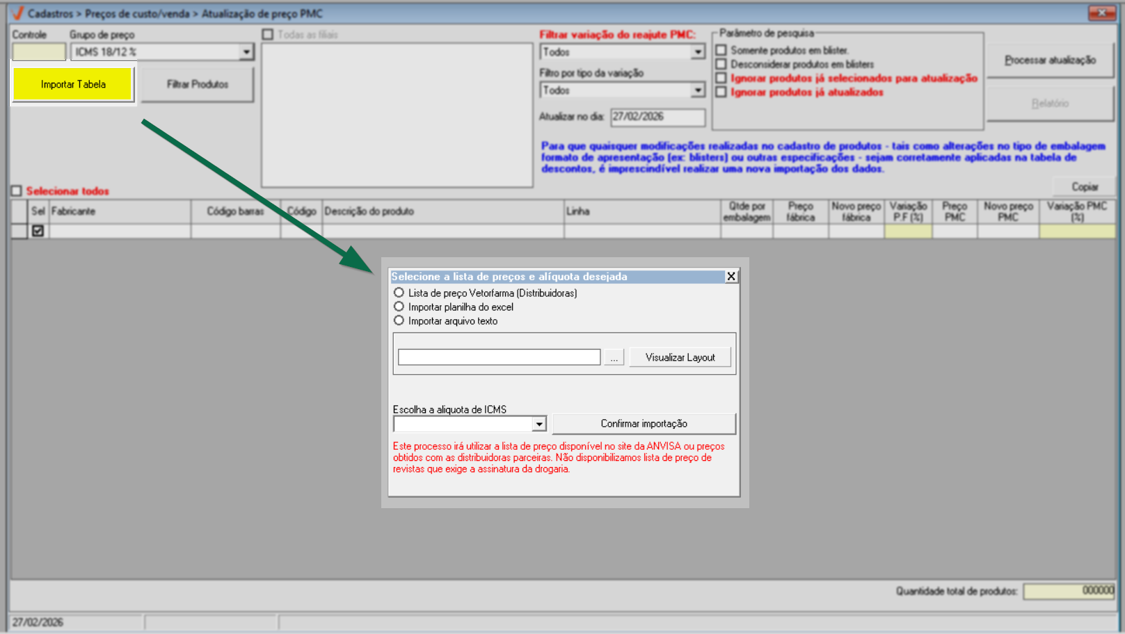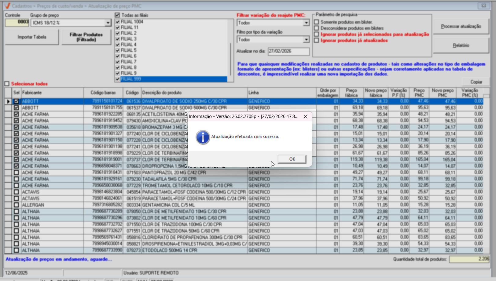 2. Além disso, é indispensável que o sistema Vetor Farma esteja atualizado para a versão mais recente, assegurando o funcionamento adequado da rotina e a correta aplicação das atualizações de preços.