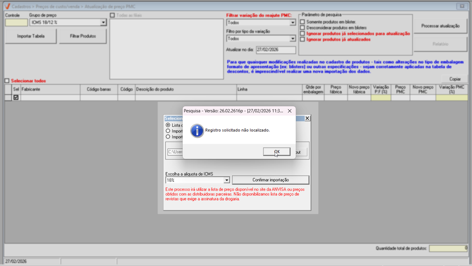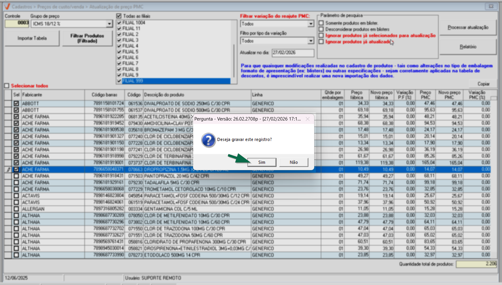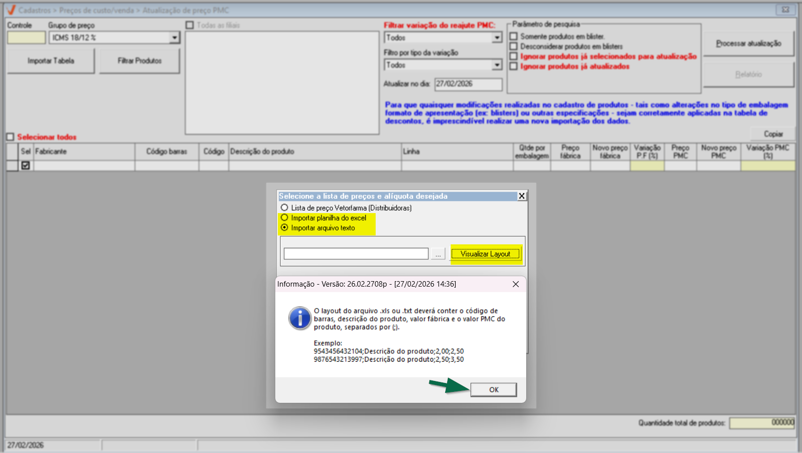 2. Além disso, é indispensável que o sistema Vetor Farma esteja atualizado para a versão mais recente, assegurando o funcionamento adequado da rotina e a correta aplicação das atualizações de preços.