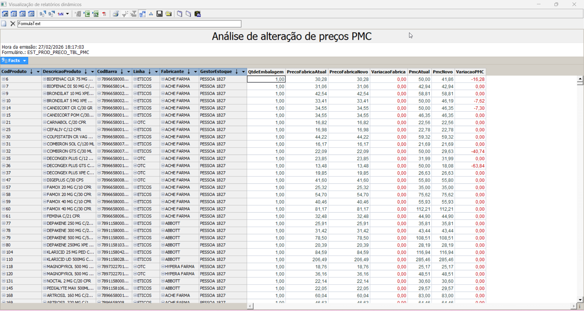 • Variação PMC (%): percentual de variação calculado entre o PMC atual e o novo PMC.