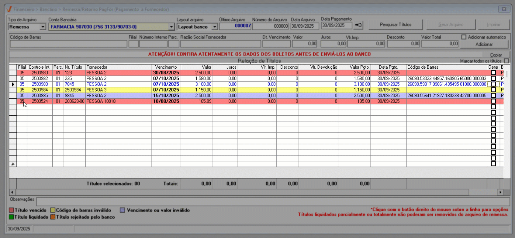 Remessa/Retorno PagFor (Pagamento de Fornecedores)