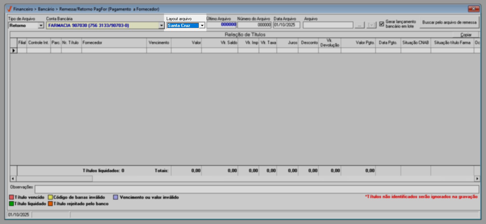 Arquivo de retorno - Baixa manual ou Distribuidora Santa Cruz