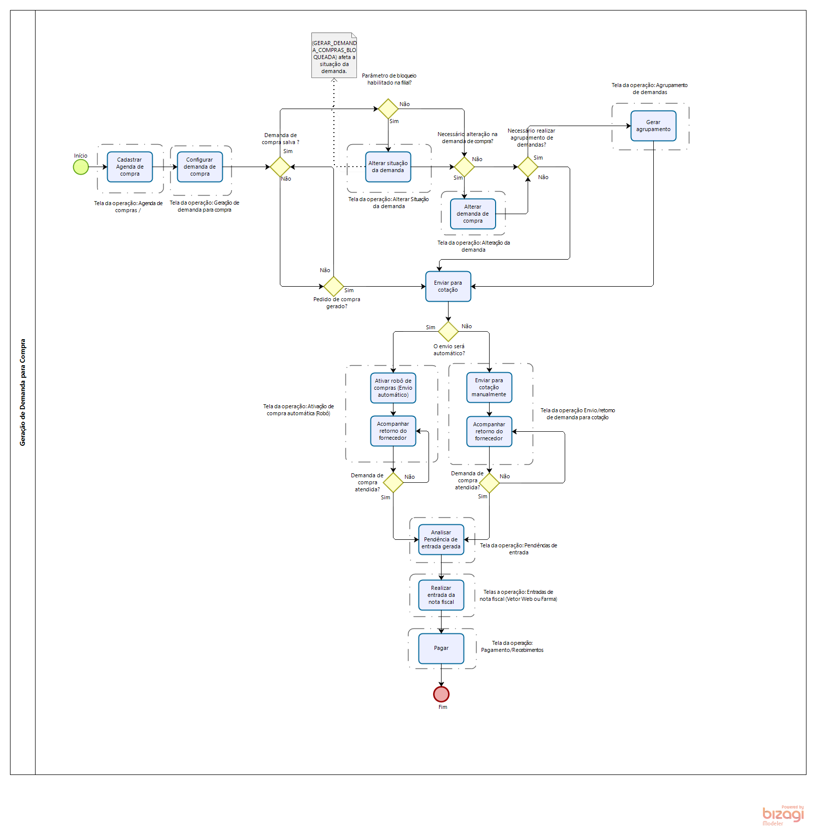 É importante compreender que, ao optar por gerar apenas a demanda, geralmente o processo ainda está em fase inicial. Isso normalmente indica que será necessário realizar outras ações antes da criação do pedido de compra. Por exemplo se o fornecedor ainda não foi definido, é recomendável realizar o envio/retorno da demanda para cotação, permitindo assim a comparação de preços entre diferentes fornecedores. Além disso, podem ser necessárias outras ações, como o agrupamento de demandas ou a ativação do robô de compras, caso ele não tenha sido ativado no momento da geração da demanda.