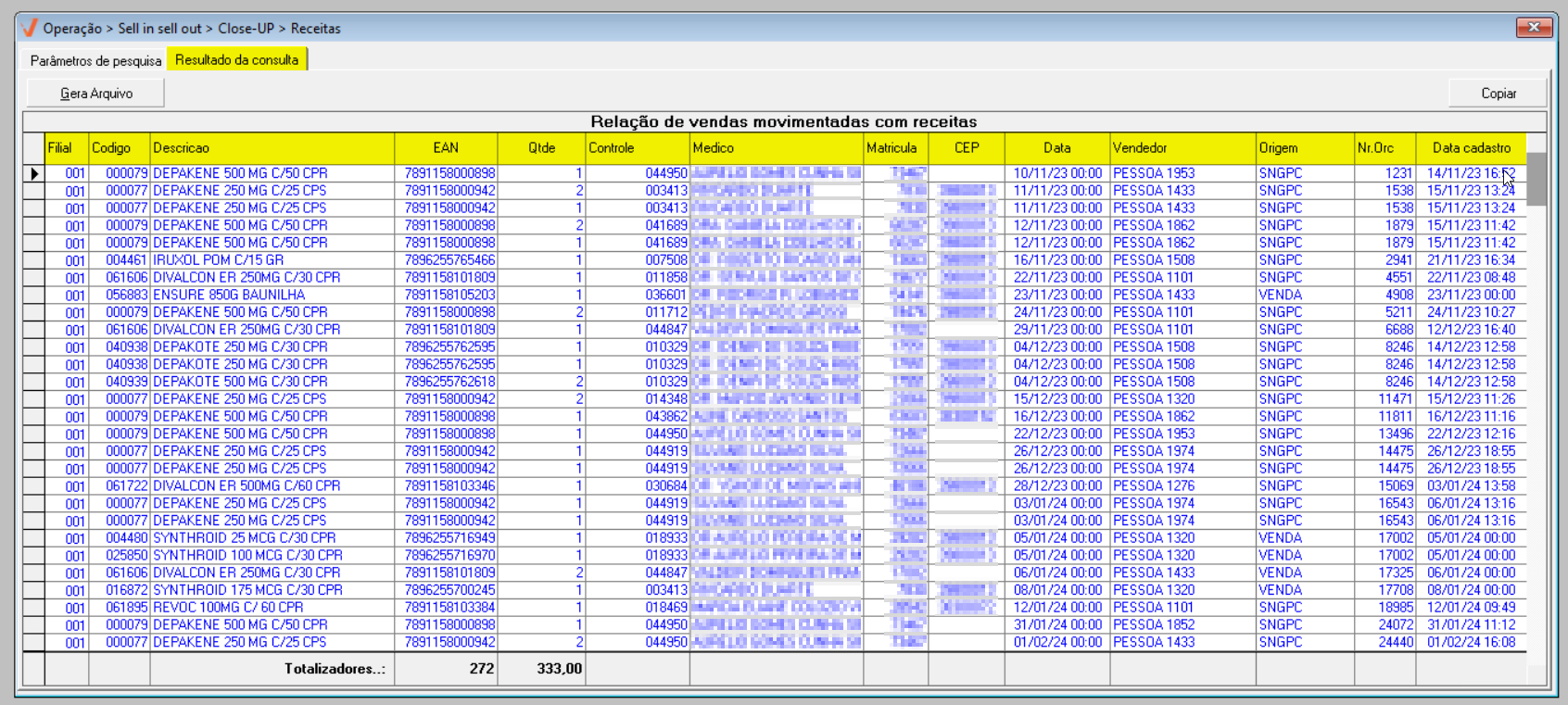 - Origem: Indica a origem do registro (venda ou SNGPC).