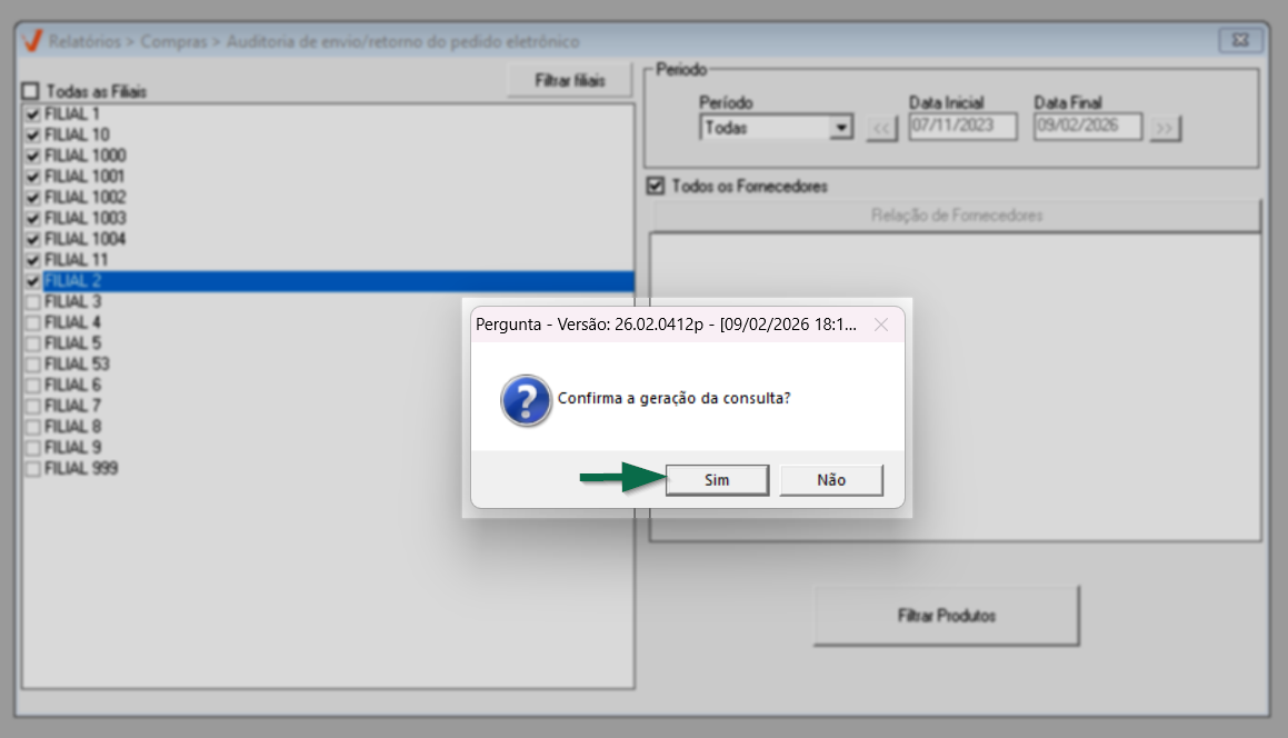 Após aplicar os filtros desejados, pressione o atalho >> F6, confirme a mensagem exibida e aguarde a emissão do relatório.