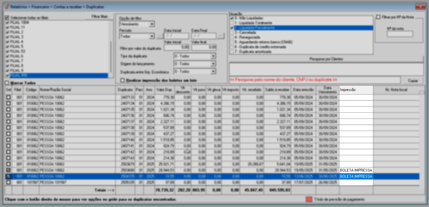 - Impressão: Coluna para informar se a duplicata foi impressa.