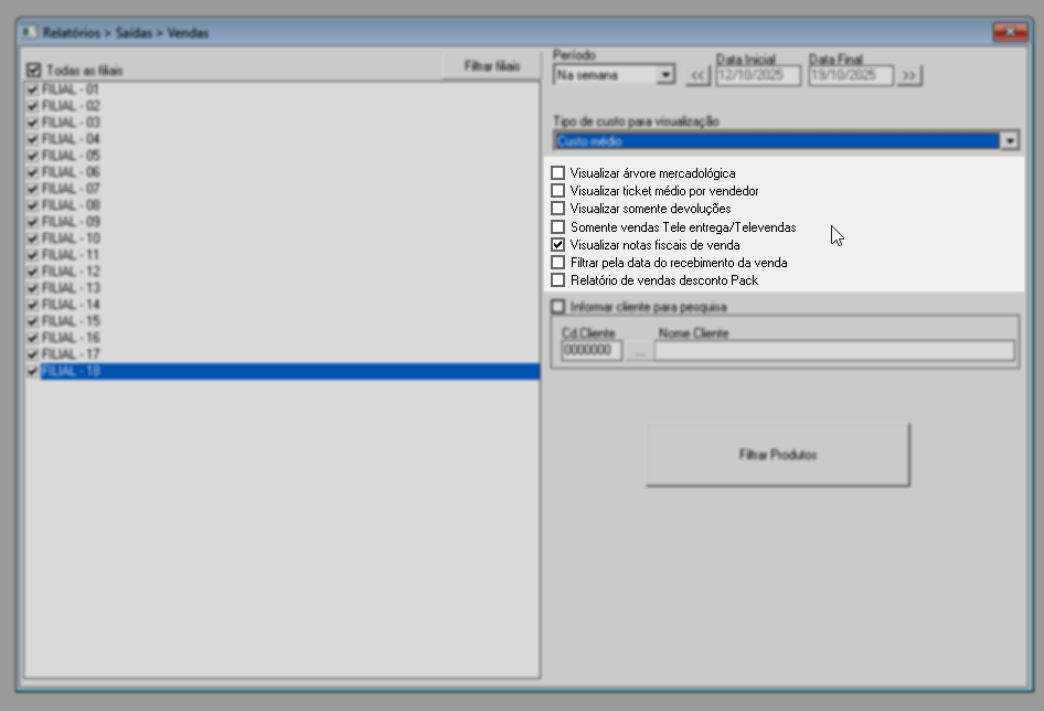 Visualizar notas fiscais de venda: inclui no relatório os dados das notas fiscais correspondentes às vendas. Por padrão, o sistema já mantém essa opção selecionada.