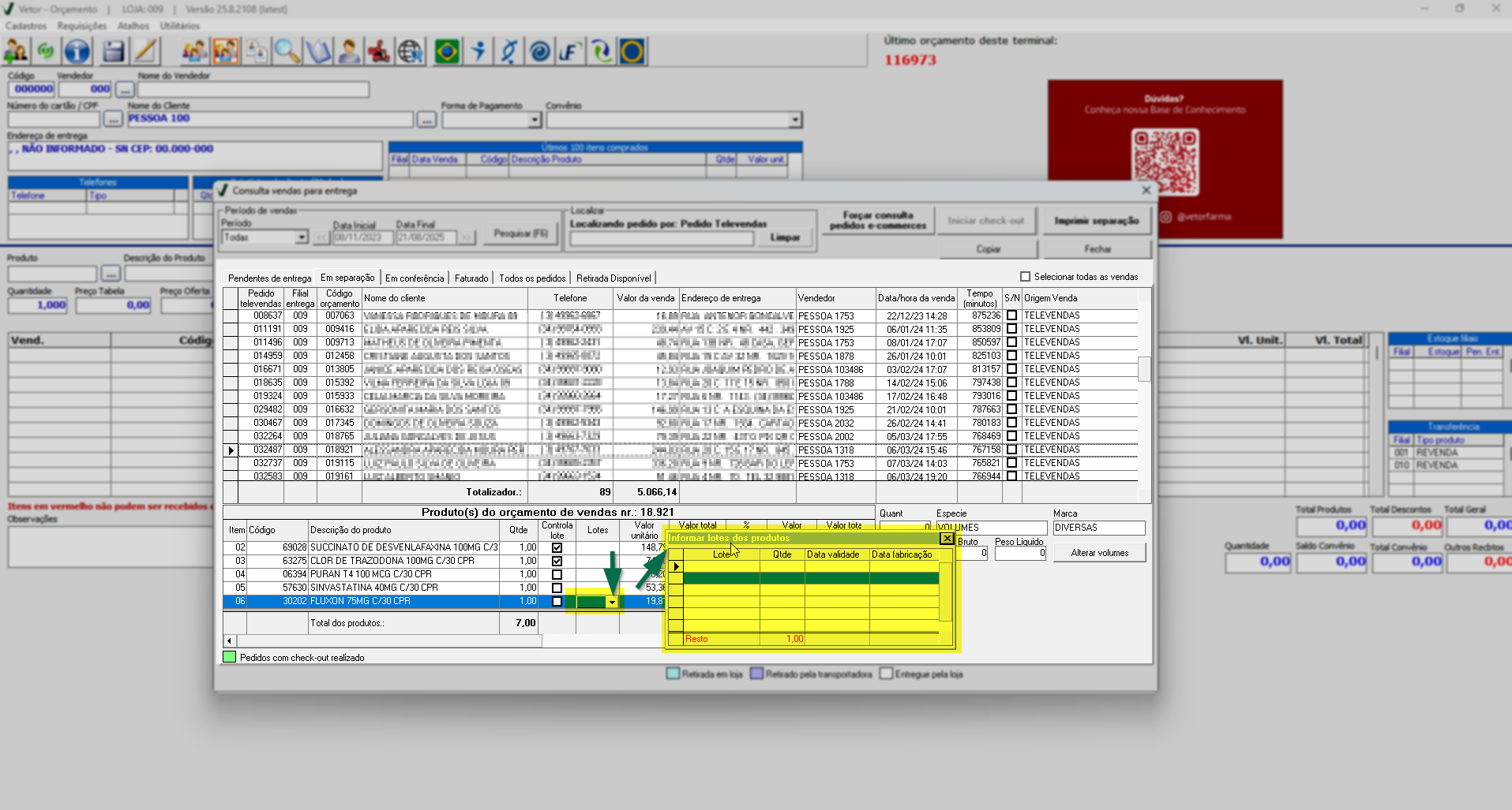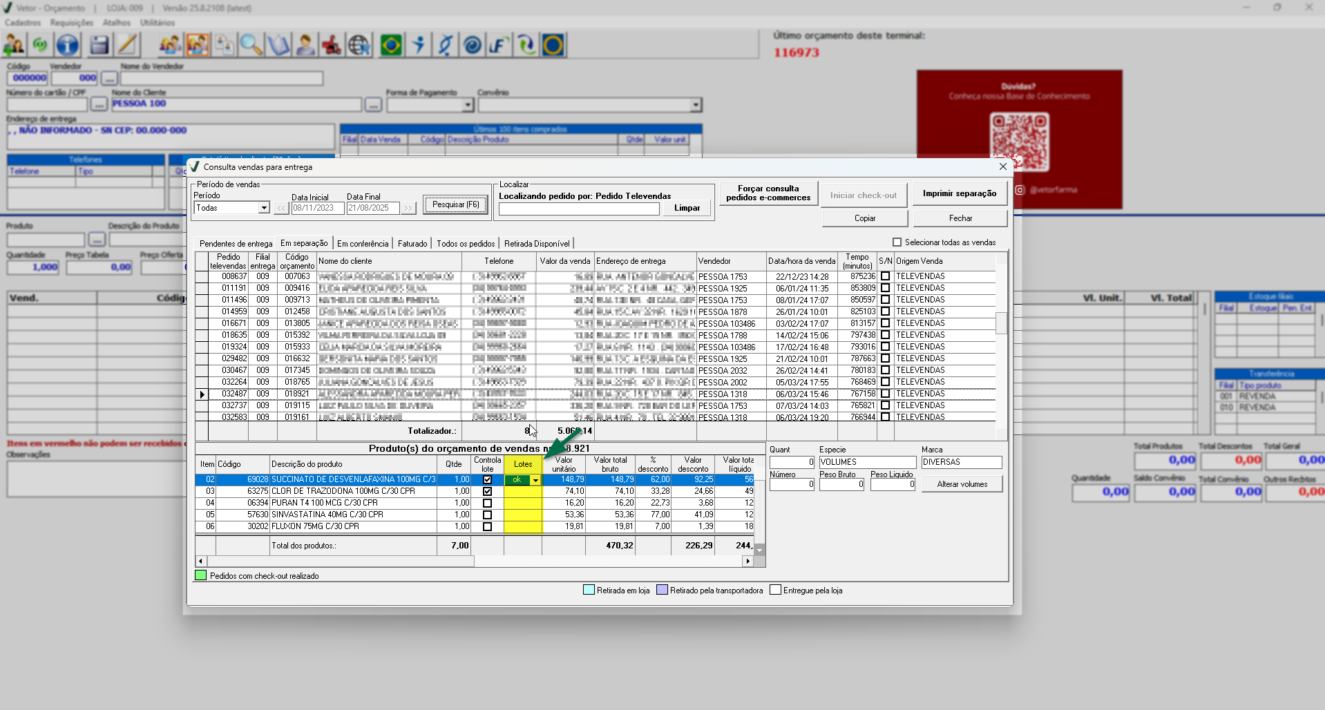 Gerenciar orçamento para separação (Televendas e E-commerce) (Consulta vendas para entrega)