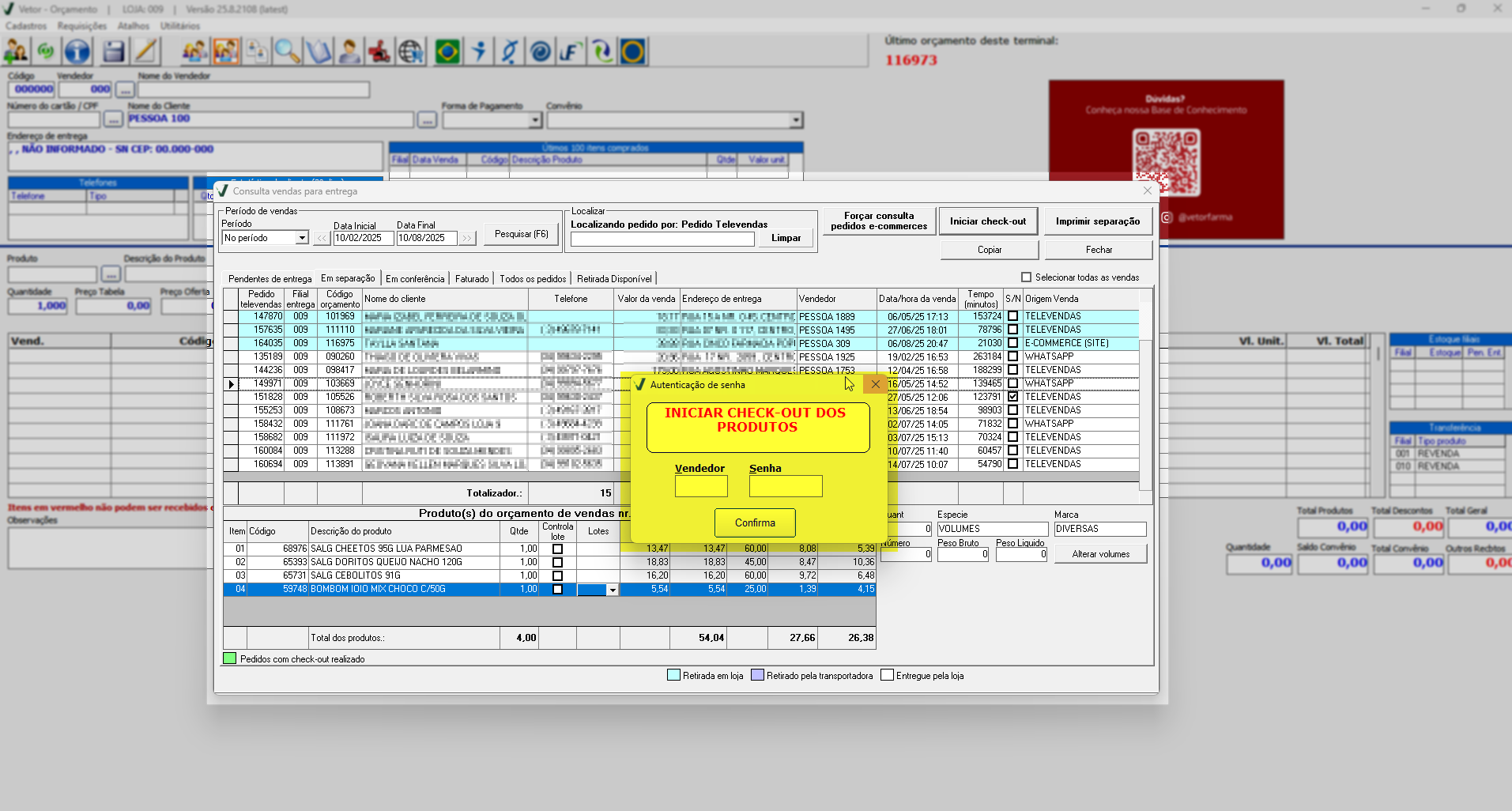 - O Check-out dos produtos será possível mediante a configuração prévia do parâmetro que habilita esta operação. Consulte o artigo "Configuração dos parâmetros de TeleVendas", e realize a configuração caso não tenha sido realizada.