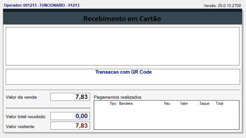 Se o tipo de visualização selecionado for "PinPad", o QR Code será exibido na maquininha assim que for gerado. O operador pode, então, acompanhar e aguardar a finalização da operação.