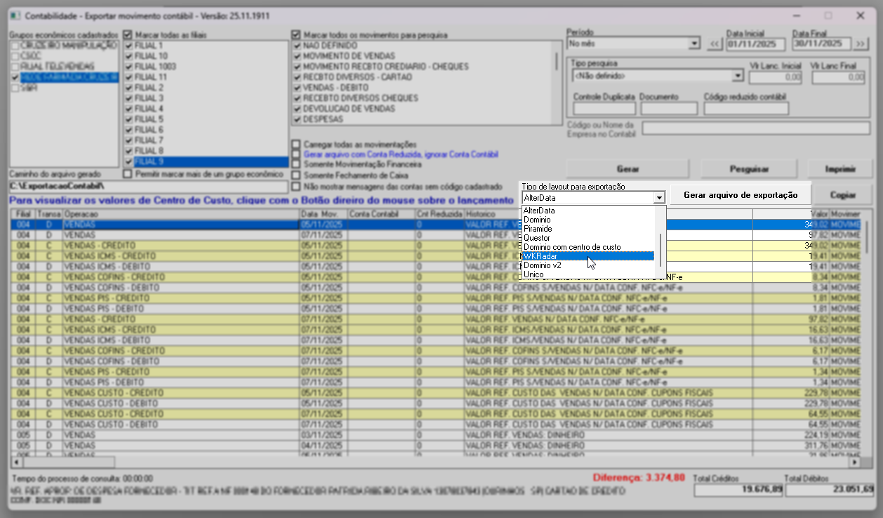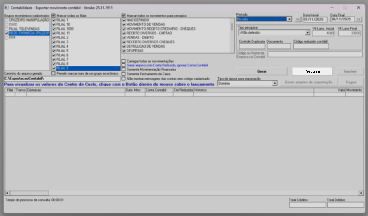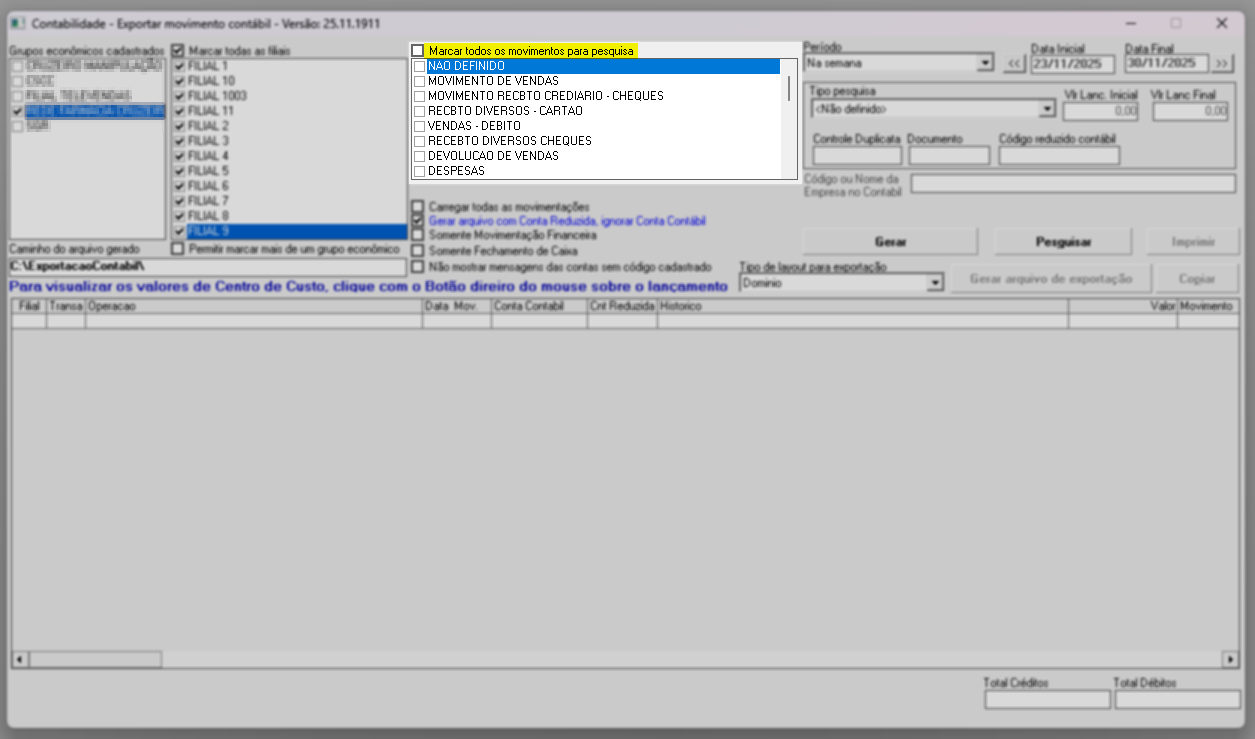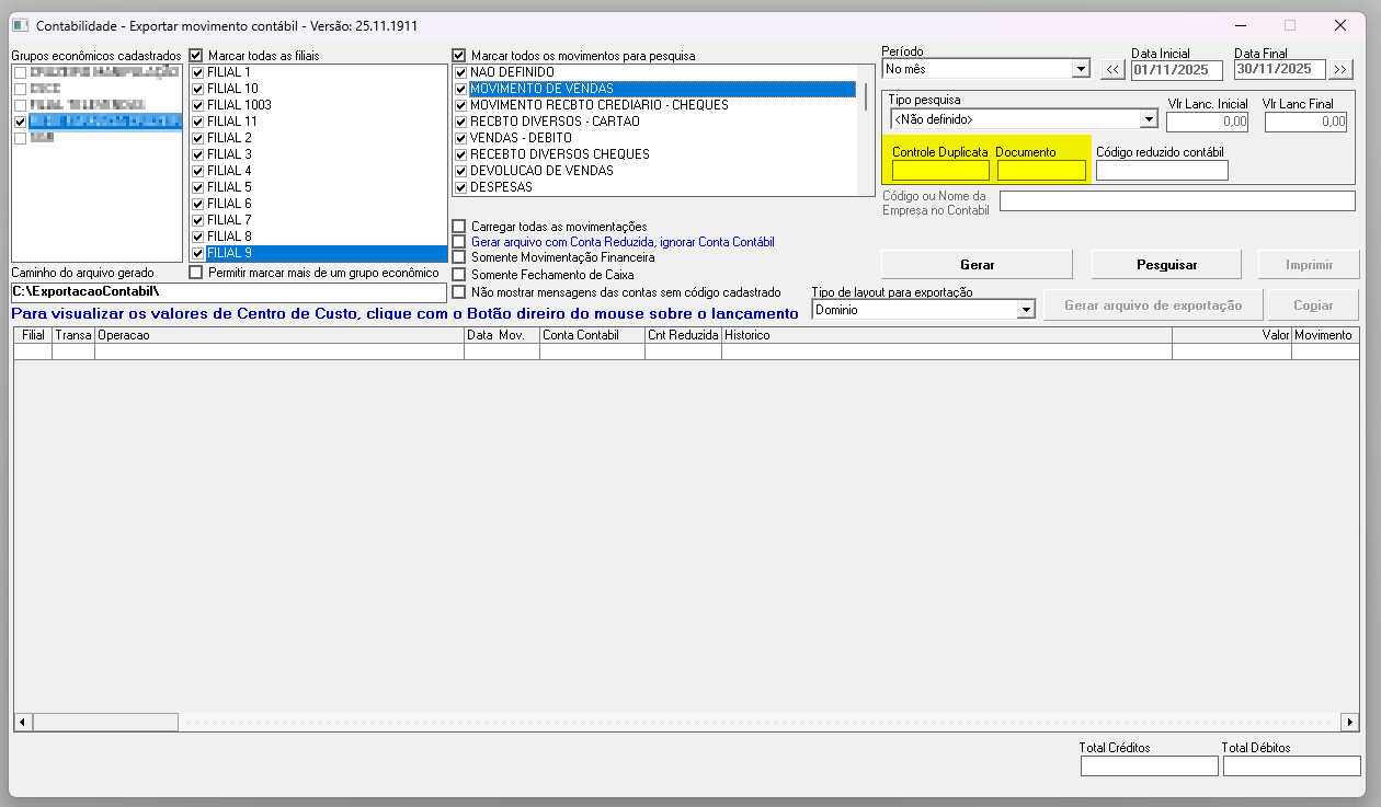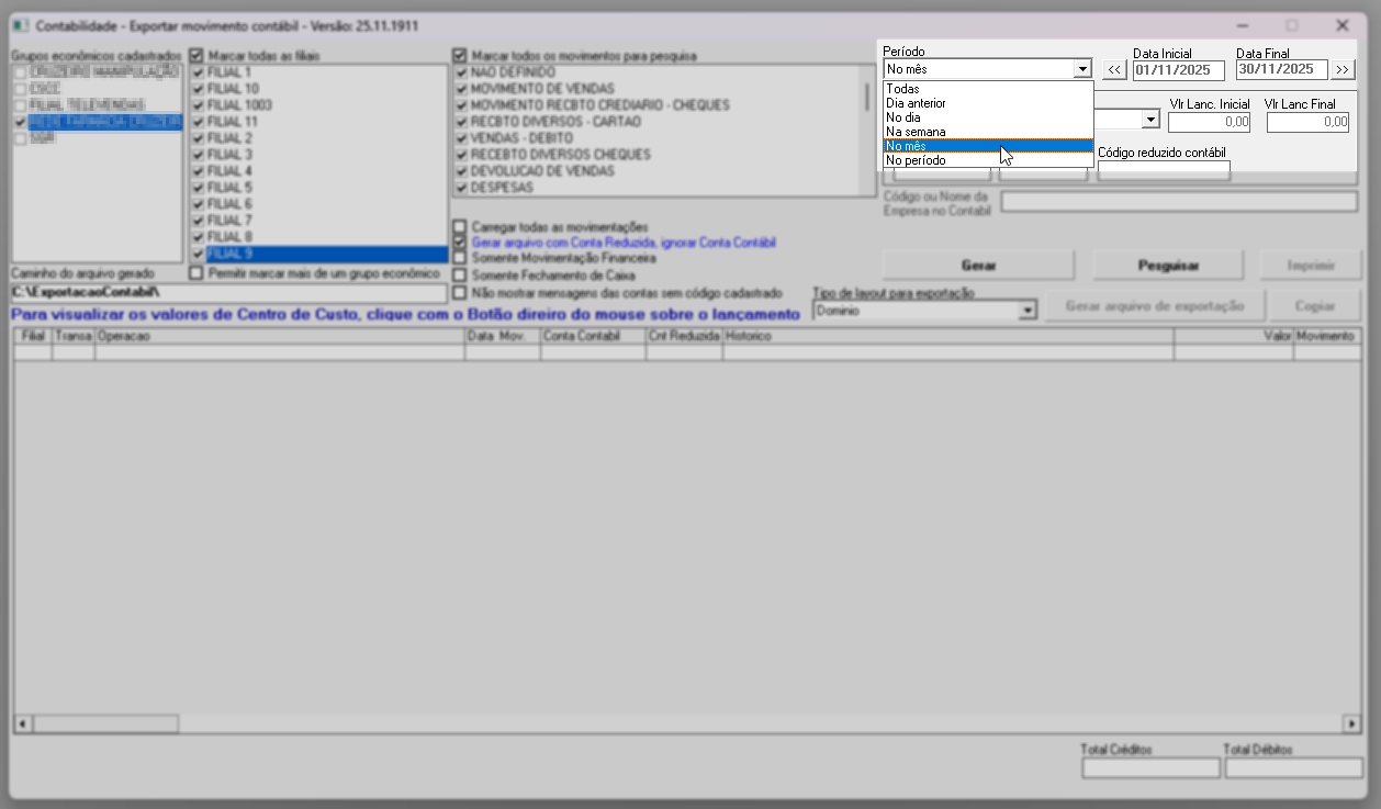 1º Passo - Exportar movimento contábil