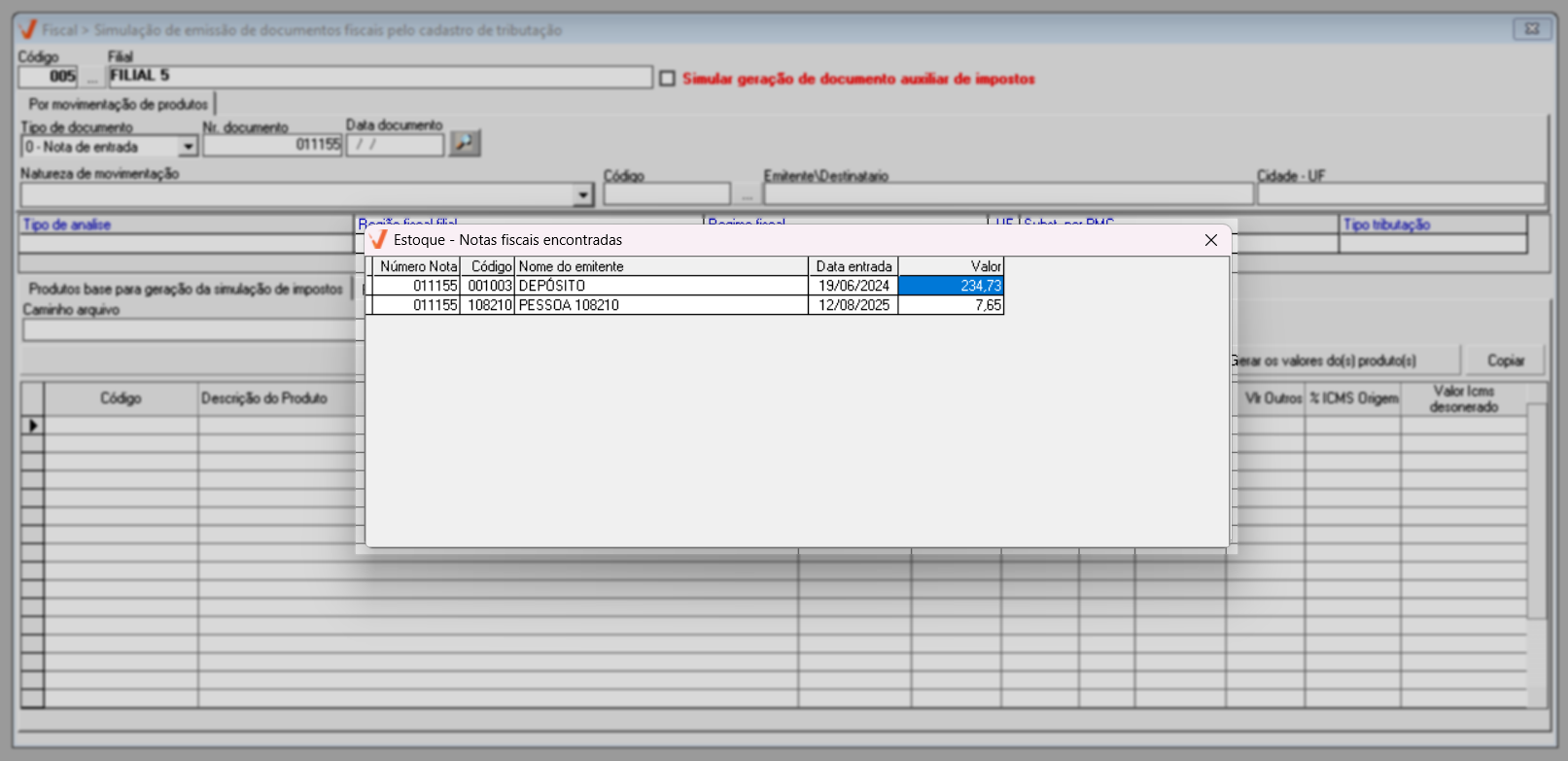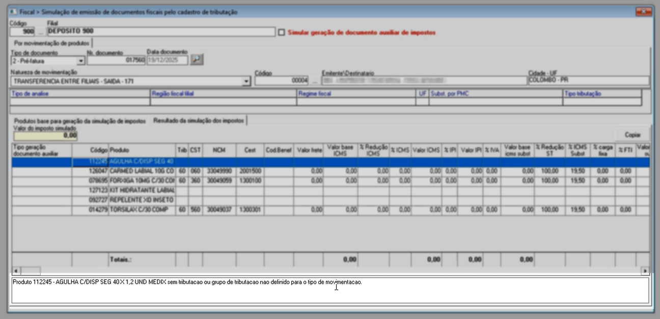 Módulo Fiscal - Simulação de geração de documentos fiscais pelo cadastro de tributação