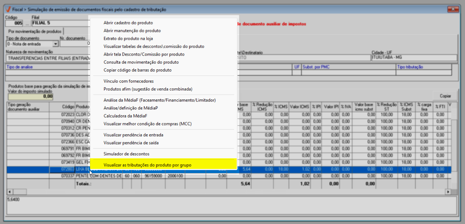 Após aplicar o grupo de tributação e/ou realizar qualquer modificação, o usuário deverá retornar à tela de simulação e pressionar o atalho F6. Dessa forma, a simulação será gerada considerando os ajustes realizados.