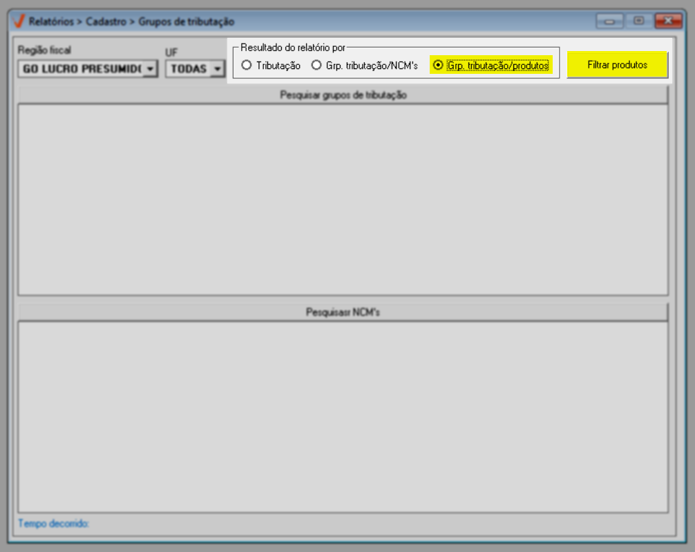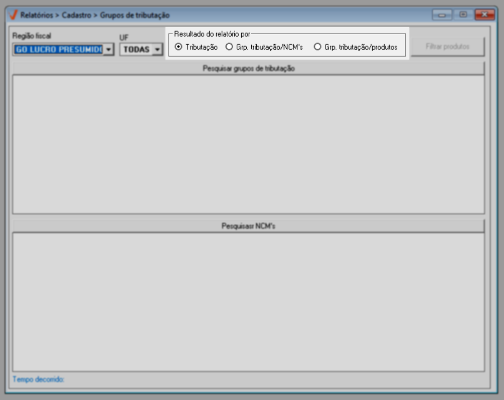 - Para que o relatório seja gerado, é necessário que os grupos de tributação estejam previamente cadastrados no sistema. Para saber como efetuar esse cadastro, clique aqui.