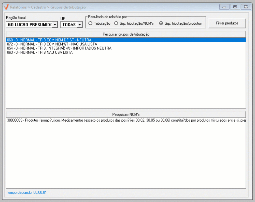 Módulo Fiscal - Relatório: Grupos de Tributação